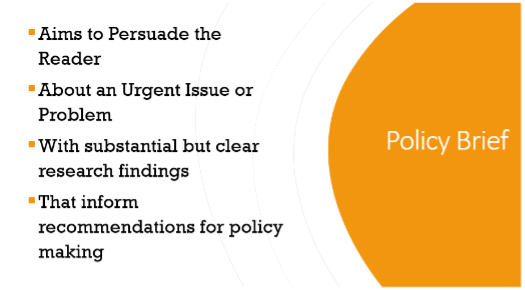 - Explain the purpose and nature of a Policy Brief as a genre of strategic writing.